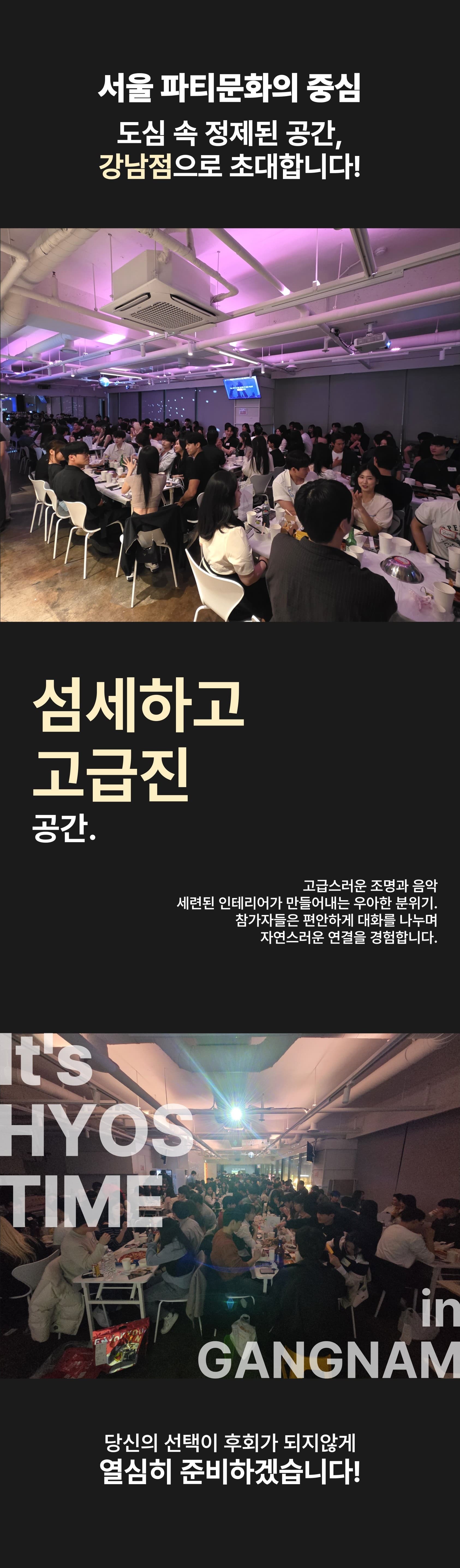 서울의 중심에서 경험하는, 우아하면서도 특별한 밤. 강남점은 단순한 파티가 아닌, 고급스러운 만남의 장입니다.